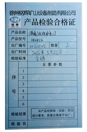 產品出廠合格證